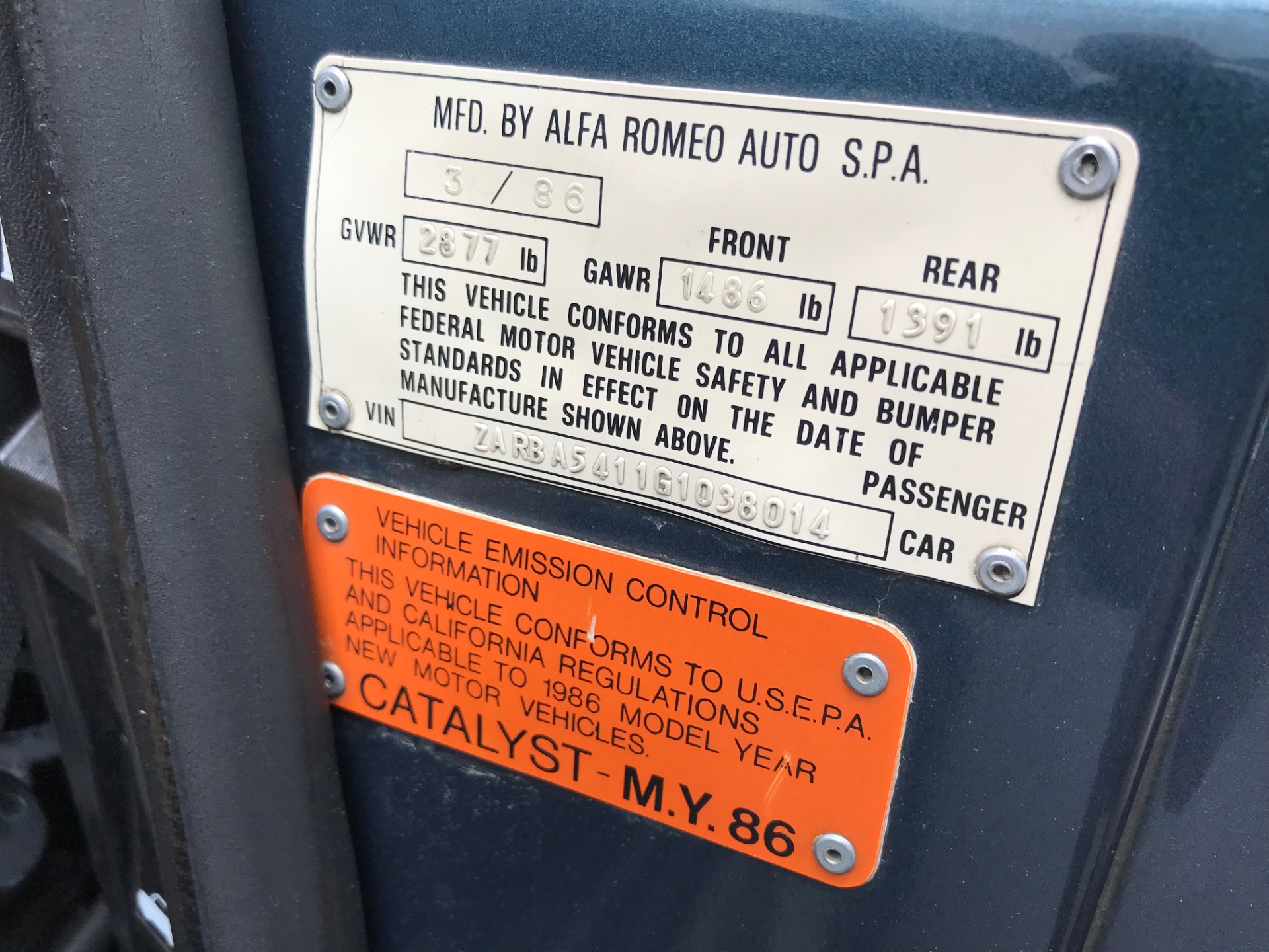 | VIN: | ZARBA5411G1038014 |
