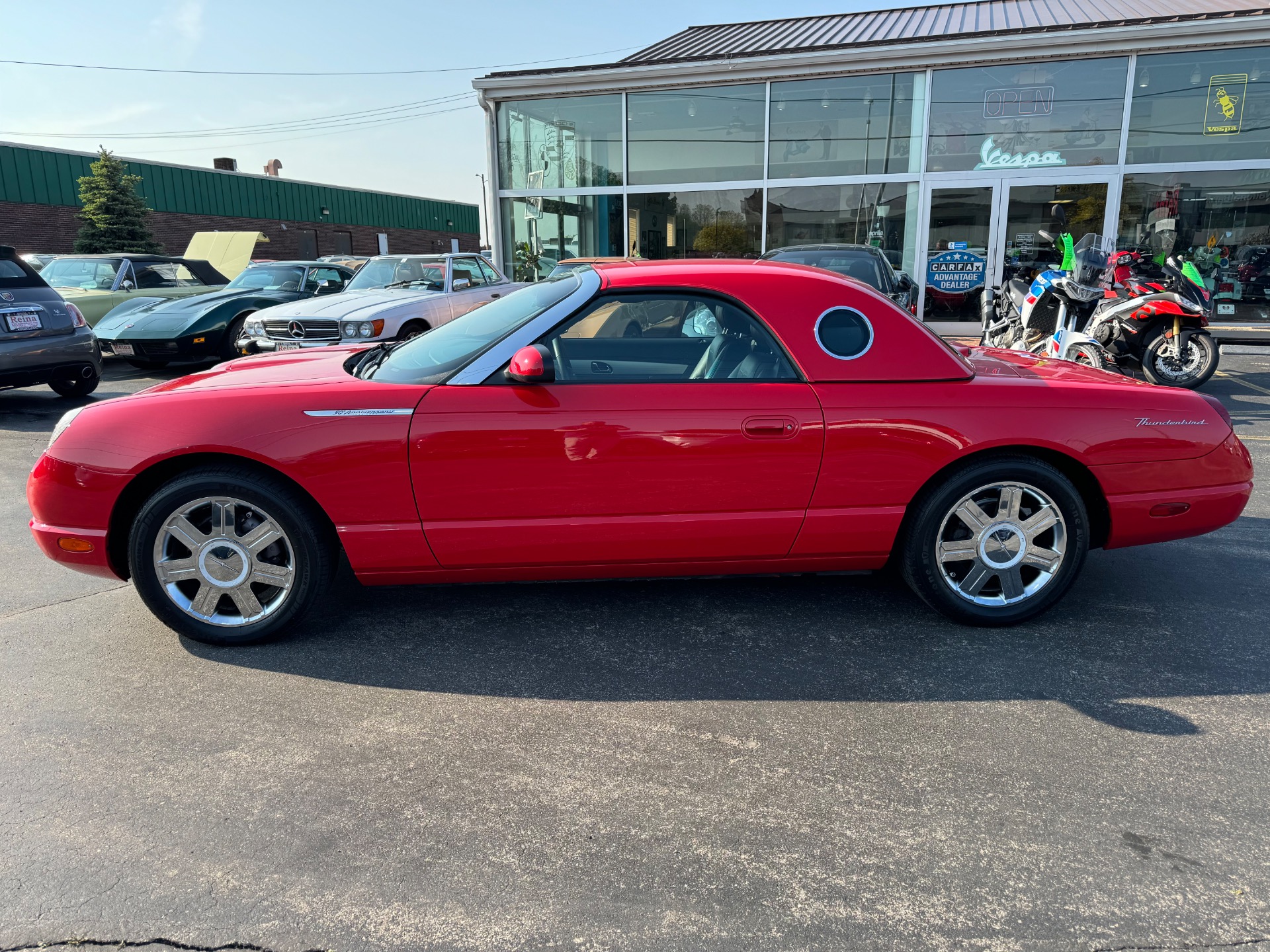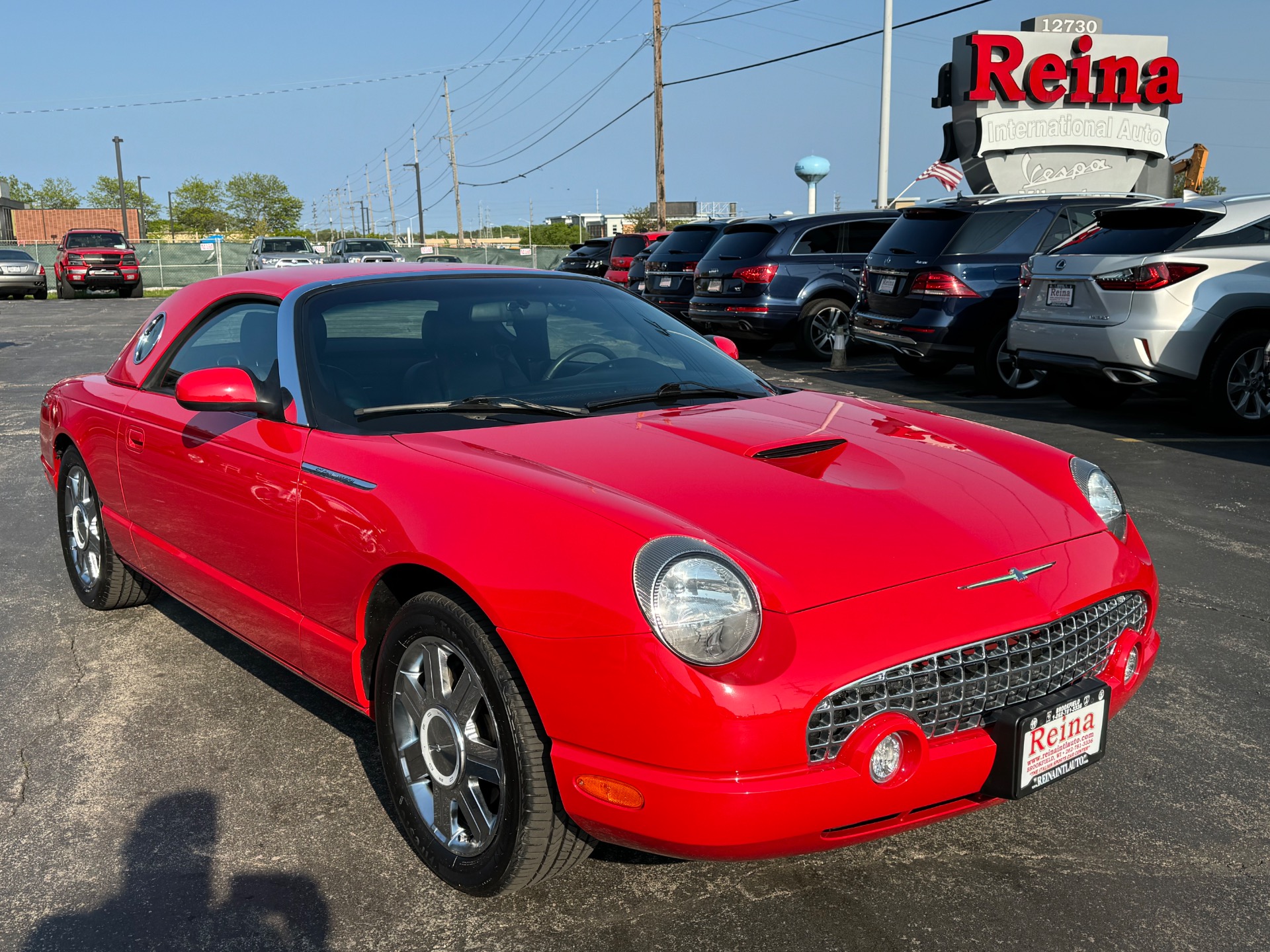 2005 Ford Thunderbird Deluxe 50th Anniversary, Torch Red on Black Ink Leather, Clean Carfax, Only 9519 Miles!!! Heated Seats, Power Top, Traction Control, Power Windows, Power Locks, CD Player, 17-inch chrome wheels with new Firestone Fire Hawk tires, 1 of only 1,846 built in Torch Red for 2005, 2 Keys & Books!!! Also Comes With Boot & Wheeled Stand for Hard Top.