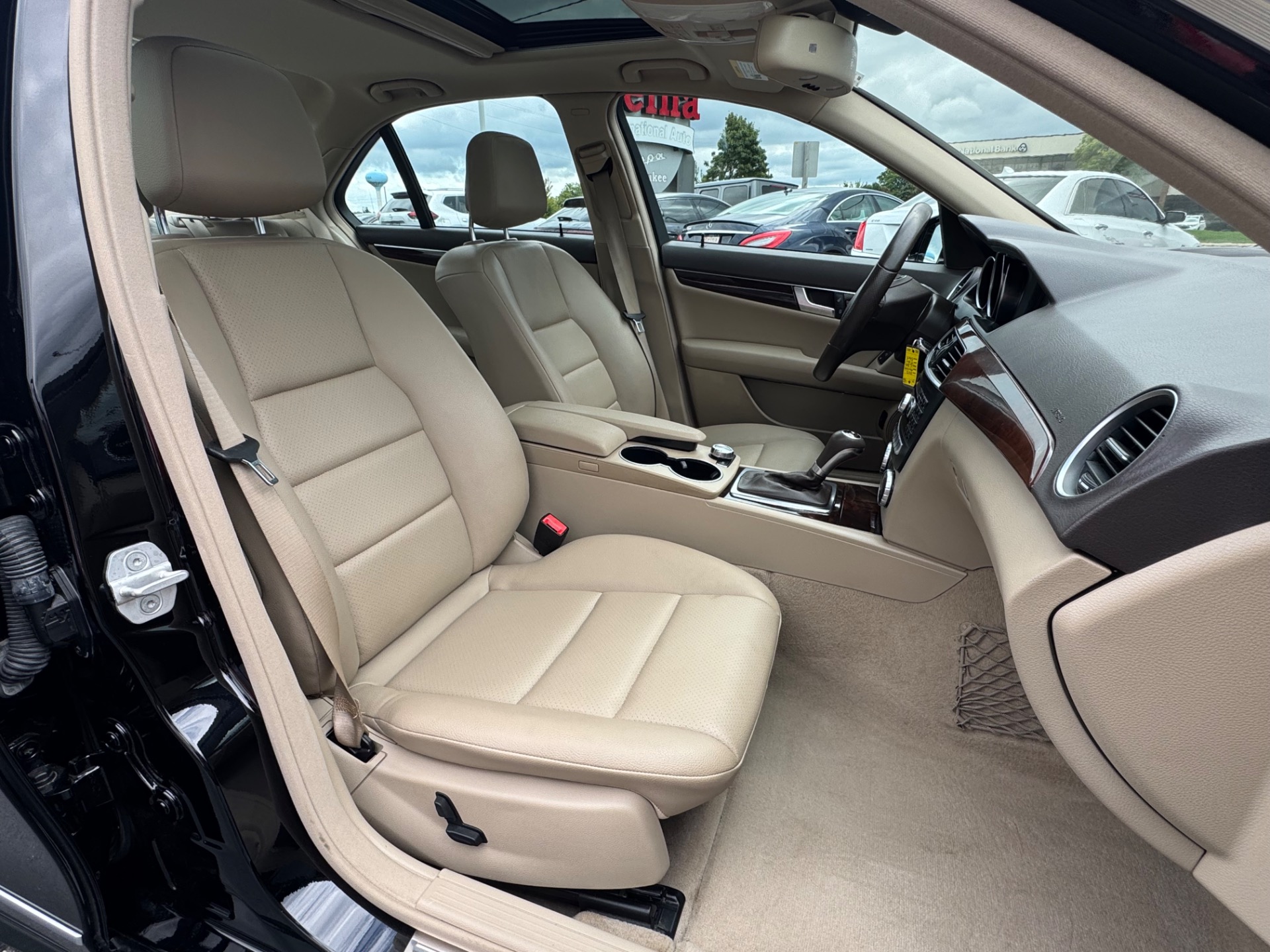 2013 Mercedes-Benz C 300 Sport 4MATIC, Black on Almond/Beige, Clean Carfax, 2 Owner, Only 82K Miles!!! Navigation, Premium 1 PKG, Multimedia PKG, Back-Up Camera, Heated Front Seats, Premium Harman/Kardon Sound, Power Moonroof, 60/40 Split Rear Folding Seats, voice control, COMAND System with hard drive navigation, 3D map views, 7 in. high resolution LCD color display, Gracenote album information, in-dash 6 DVD/CD changer, 10 GB music register and Sirius traffic service. iPod/MP3 media interface and interface cable, power driver seat and steering column with memory, split folding rear seats, SIRIUS satellite radio, harman/kardon sound system with Dolby 5.1, heated front seats and 4-way lumbar support. Trunk Lid Spoiler, Burl Walnut Wood Trim, 2 Keys & Books!