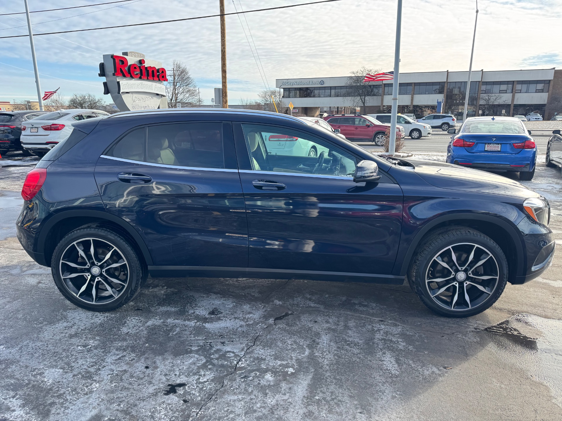 2017 Mercedes-Benz GLA 250 4MATIC, Lunar Blue Metallic on Sahara Beige MB-Tex, 2 Owner, Only 75K Miles! Apple Carplay, Navigation, Panoramic Moonroof, Premium 1 PKG, Blind Spot Assist, Harman/Kardon LOGIC7 surround sound, rearview camera, KEYLESS-GO, heated front seats, and SiriusXM radio, 19" 5-Spoke Wheels, Power Lift-Gate, 2 Keys & Books!