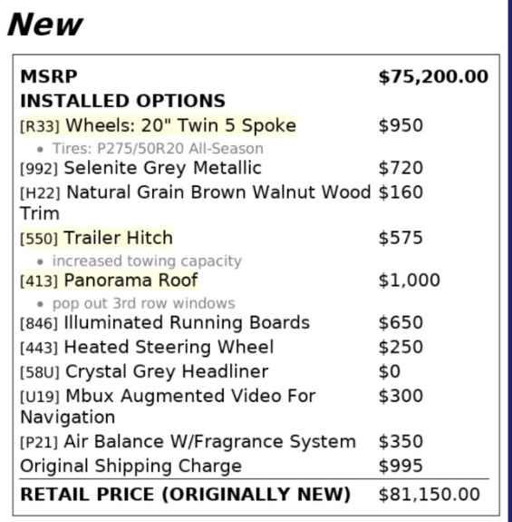 - Wheels and Tires : 20 in. Twin 5-Spoke Wheels (Includes 275/50 all season tires.)