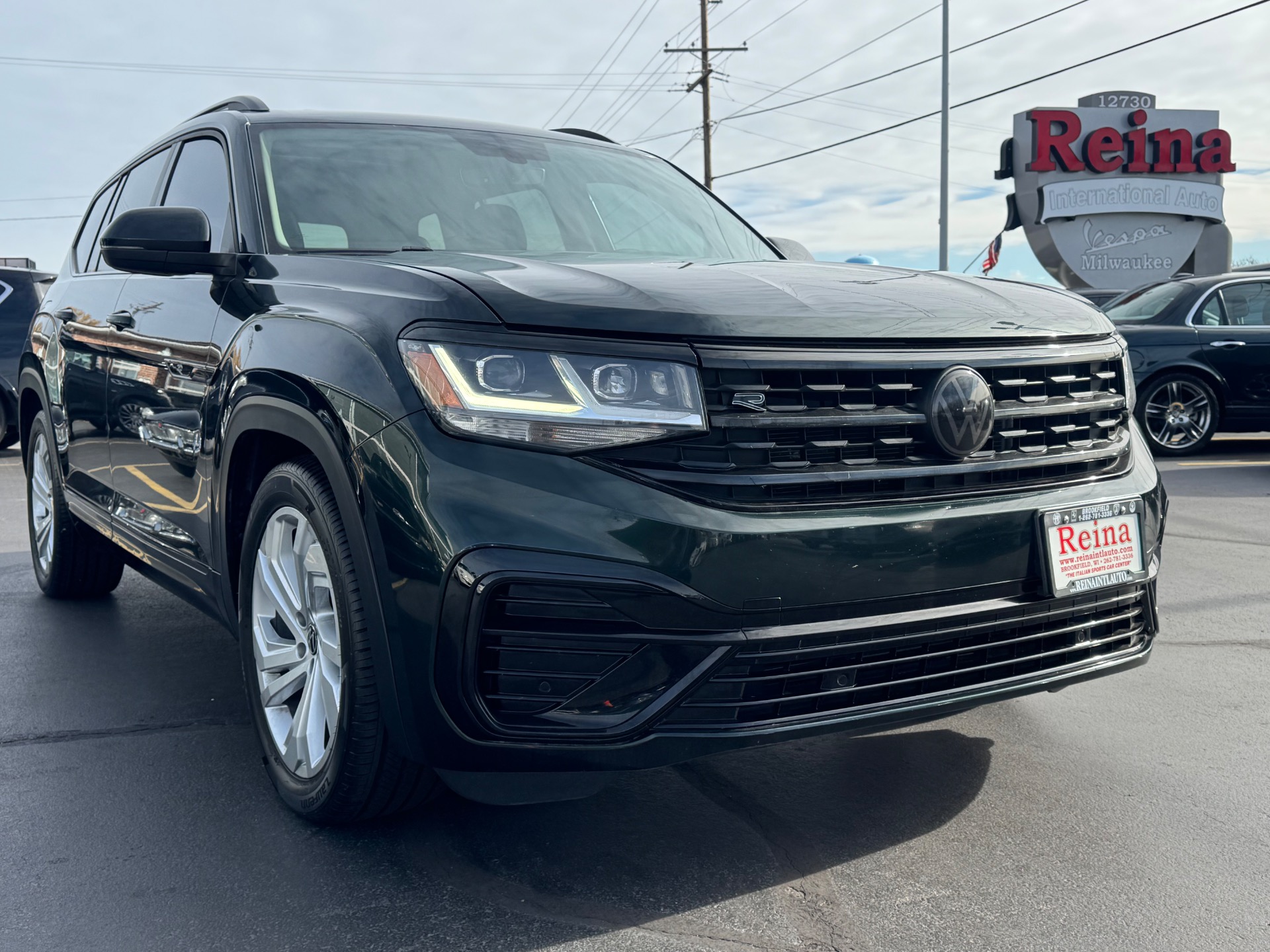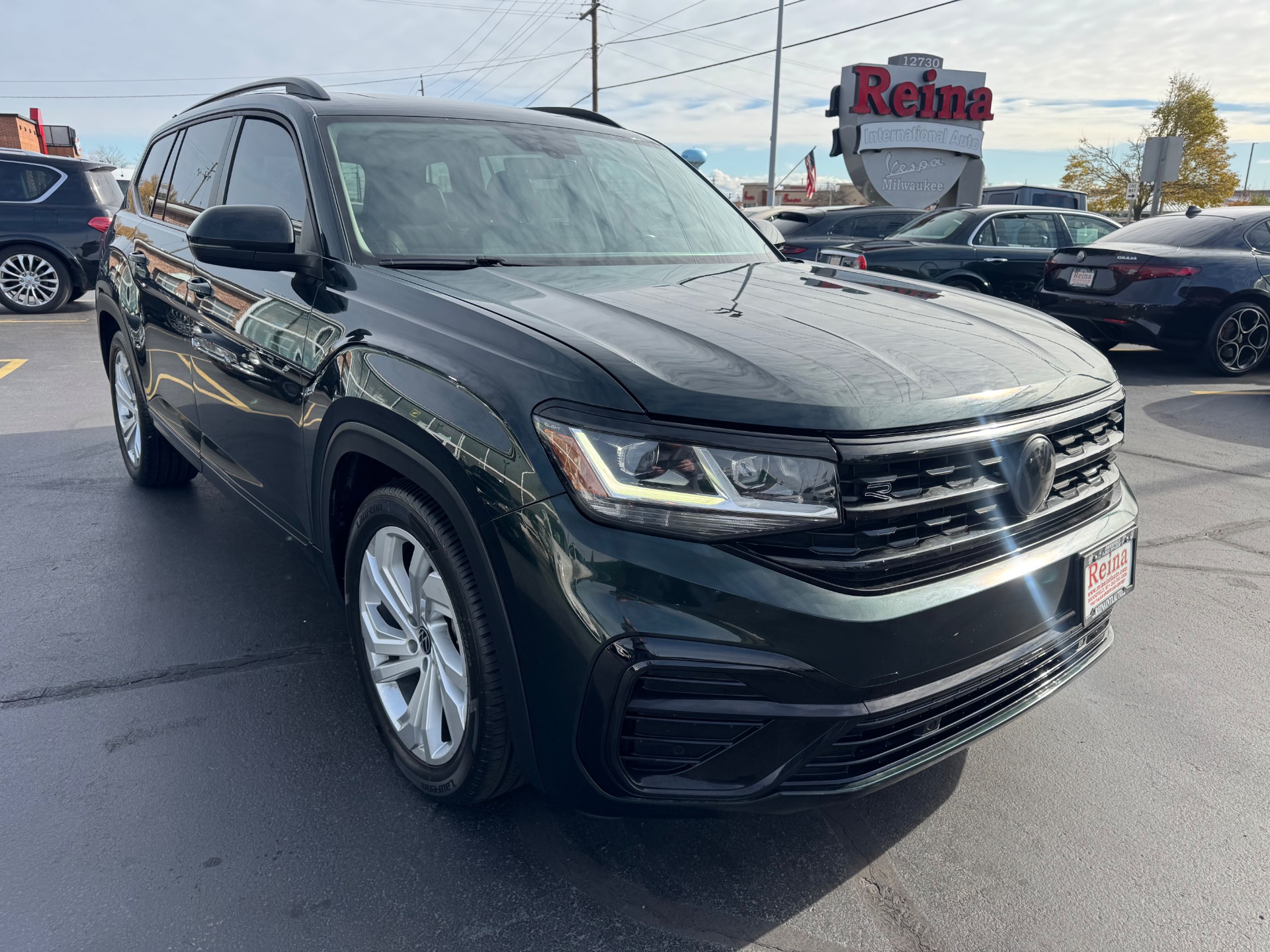 2021 Volkswagen Atlas V6 SE R-Line 4Motion, Racing Green On Titan Black, 2 Keys & Books, Remote Start, Apple CarPlay & Android Auto, Adaptive stop and go cruise control, Back-Up Camera, Power Panoramic Roof, Power Lift-gate, Heated Front Seats,